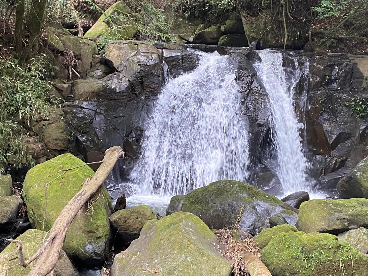 コンクリートのあぜ道を看板に従って700メートルほど進むと行き止まり。あぜ道脇に駐車して、歩いて100メートルほど竹林の中を進むと、突然、大迫力の「第一の滝」が現れる。すばらしい大迫力の直下型の滝です。(女性でも行ける位の道)さらに歩いて次の滝へ行くのではなく、県道を車で引き返し4 ー500メートル上流へ進むと右手に「久木田、下門公民館」があります。 交通の邪魔にならない道路脇に駐車をして、向かい側の階段を川へ下ると大迫力の「第四の滝」が見えてくる。ここは途中フェンスで通行止めのようになっていますが、左角から奥へ進めるように開いている(立入禁止とは書いてない)極端に足場が悪く危険ではありますが進めない事は無い(自己責任で) 第二の滝と第三の滝は、この間の県道200メートル位の間に川へ下る道が見つけられるので、そこから下ると良い。 この第1の滝から第4の滝全てが開発を途中でストップして荒れた状況になっている。とても素晴らしい所なのでぜひ整備をしてほしい。