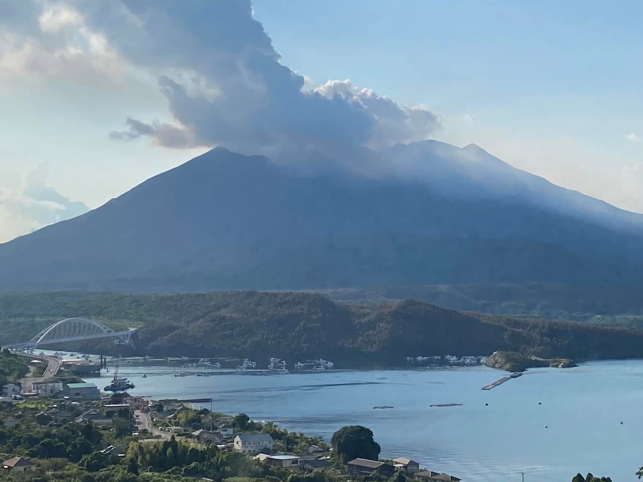 鹿児島市より見て桜島の真裏に位置する牛根地区。その牛根の山手にある展望ポイント。パックリ口を開ける桜島の南岳噴火口が噴煙を上げ牛根大橋とセットで見える珍しいポイントです。鹿児島市内から見る噴火はとは違って、ここからの噴火は噴火口が見えるので迫力がある。 訪問した日は、あいにく霞が掛かっていましたが壮大な景色を見ることができました。 牛根の国道220号線上にある、牛根簡易郵便局より牛根麓稲荷神社の埋没鳥居を目指して車を進める。途中は神社への案内看板がある。 さらに神社より車で2分から3分山手へ上がる。ガードレール越しに、1番景色が良いところが目指すポイントです。 設備は一切無い、ただの山道ですが珍しい展望が望めます。車1台やっと通れる荒れた山道なので初心者の方は避けた方が良いかも、ガイドブックやネット等には一切出てこない所なので、穴場を求める方はトライしてみてみたらどうでしょう!、 午後から行くと逆光になるので良い写真は取れない午前中が良い。 「牛根麓稲荷神社の埋没鳥居」とセットで行くと良い。