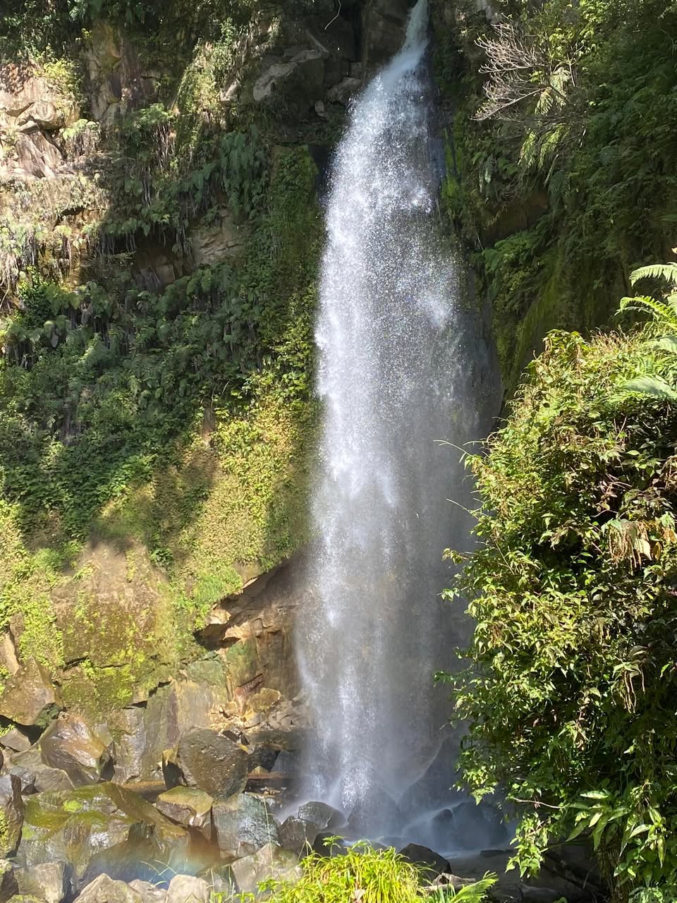 甲突川の上流、河頭交差点のバス停から甲突川の分岐する支流を北へ(県道ではなく狭い道) 、狭い路地を入り川沿いを道なりに600mほど行く。 さらに狭い未舗装の林道へ入ります。軽なら心配いりません。林道に入り100m程で右手に車1台分のスペースがあります。ここを過ぎても道は100mほど続きますが引き返せません。悪路すぎて普通の軽では底をスリます。 なので、車を降りて500メートルほど歩きます。少し籔の中を進みます。木の枝と倒木がその距離をさらに長く感じさせます。元々は整備された道だったようで、なんとなく道はわかります。 突然大きな滝が現れます。大迫力の大きな滝です。 滝壺までは足場が悪く行けませんが無理をしなくてもこの写真を撮ったポジションで充分です。(滝から10メートルほど) 鹿児島市内にも、このような大迫力の滝があるとは驚きでした。