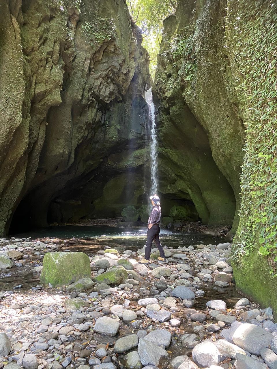 その中に1本の細長い白い布が流れ落ちているような滝で神々しくてとてもきれいでした。